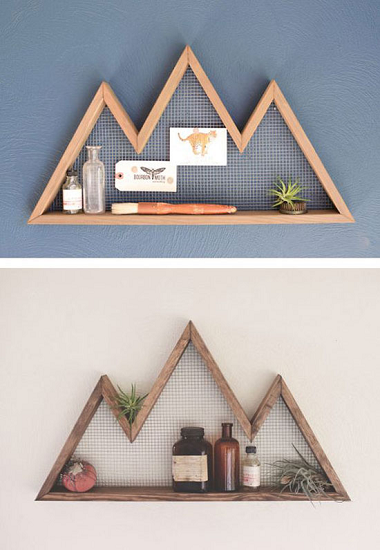 墻面收納經(jīng)常會(huì)用到擱板,但只是在墻上釘一兩塊擱板未免還是單調(diào)了點(diǎn),這款像“小山”一樣的擱板倒是深得我心~不光可以用來(lái)放裝飾品,自己本身也是很有個(gè)性的裝飾品!
