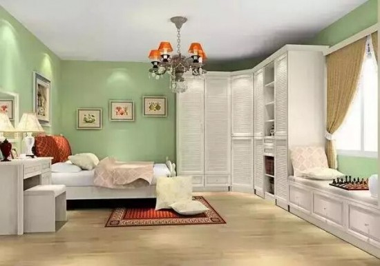 臥室墻壁轉(zhuǎn)角屬于死角,通常很難被利用,然而轉(zhuǎn)角衣柜卻能讓這個(gè)死角空間重新利用起來(lái),大大增加了空間利用率。