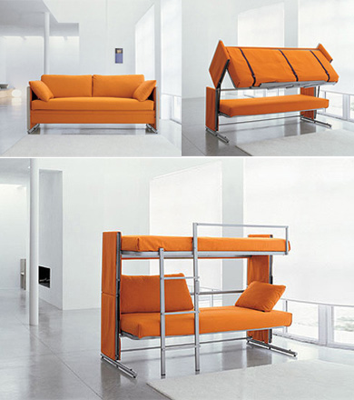 沙發(fā)和床糾纏不清的設(shè)計的確是不少,但是之前聽到的那些,無論如何的變換,都始終是從沙發(fā)變成一個床,這一次的這個大黃蜂就更牛一些,可以變成雙層床!