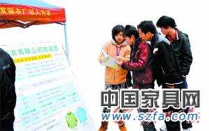 在廠門口支個廣告牌,上面寫著招聘的工種及人數(shù),記者前天在白馬工業(yè)區(qū)附近的華泰皮具廠遇到了該廠人事部的鄧小姐。鄧小姐說她自早上上班開始就一直坐在廠門口等待來應(yīng)聘的工人。“都中午11點了,這兩個小時只有3個人來面試。”在寒風中,鄧小姐一邊不停地搓著雙手,一邊向記者抱怨。