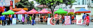前日,在厚街赤嶺,廠家把招聘點設(shè)在平時人氣旺的地方,但應(yīng)聘者依然不多。