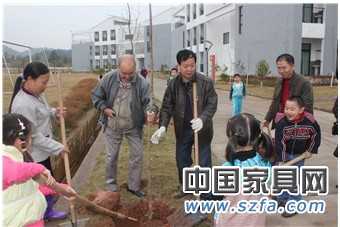 美廷公司的沈總種完了自己的天竺桂后饒有興致地教小朋友們植樹。樹木與樹人,也許本來就是相通的。