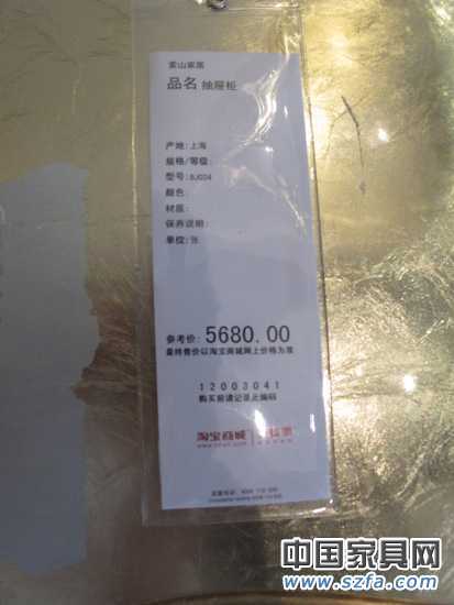記者看中一款名為“索山家居”的抽屜柜,其外表貼有一層金箔,散發(fā)著一種奢華的氣息。但金泊下面是什么材質呢?翻看一下價格標簽,只標注其產地與型號。當記者向愛蜂潮導購員咨詢時,給出的答案則是,“我們也是剛來的,具體也不清楚。你可以在情景間外的多媒體觸摸屏終端上查找到相關內容。“