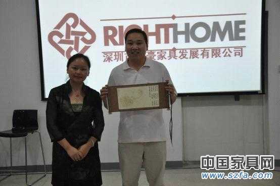 結(jié)業(yè)典禮上中國家具產(chǎn)業(yè)教育學院院長賴珍珍向仁豪鄭達峰贈予禮物