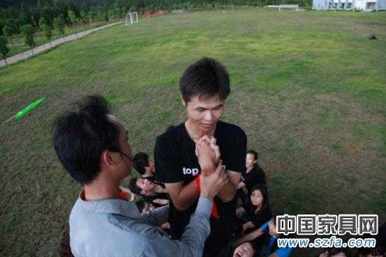 天公不作美,拓展訓練的中途突然下下起了大雨,大家一下子被淋成了落湯雞,但是依然堅持完成戶外拓展項目,“你們準備好了么?”“準備好了?。?!”“我要倒下了!”“我們接住你?。?!”,拓展的時候這幾句對話不斷回蕩在訓練場地上,臺下,一個個馬步扎穩(wěn),全神貫注,一雙雙堅定的手交織搭在一起時刻準備接著臺上即將倒下的同伴,臺上,雙手被綁,緊抱在胸前,兩眼一閉,身體挺直,倒下然后穩(wěn)穩(wěn)地被接住!這就叫做信任背摔,不管是哪一個上面的人倒下,下面的人總會安全接住他,風雨無阻!信任是互相的,你不信任你的隊友,你就不敢倒下,你沒有責任心你就不會緊握住各自的臂膀,接不住倒下的隊友!