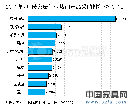 2011年7月家居行業(yè)熱門產(chǎn)品排行榜TOP10