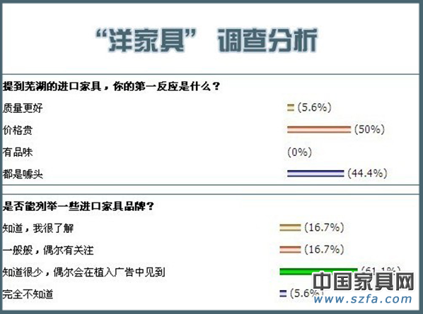 品牌的第一印象很重要,通過調(diào)查結(jié)果,小編注意到,本地市民對于進(jìn)口家具的首要感覺就是價(jià)格更貴和產(chǎn)品宣傳噱頭,對“洋家具”的直觀印象不是很好,對進(jìn)口家具品牌也只是通過一些植入廣告才了解,本地的家居賣場上進(jìn)口家具較少,消費(fèi)者也沒有選購意識(shí)。