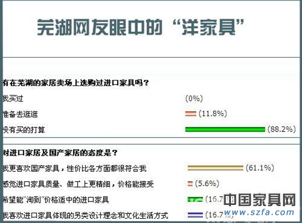 家具行業(yè)主要市場還是普通老百姓,消費(fèi)水平和消費(fèi)意識(shí)都有一定的階層性,面對進(jìn)口家具的“天價(jià)”,更多老百姓寧愿選擇性價(jià)比高的國產(chǎn)家居,而且由于不了解洋家具的品牌、不習(xí)慣銷售人員的推銷方式,“中國制造”的國產(chǎn)家具在本地市場上獲得完勝。