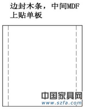 右邊是柜子的前框,有一道工藝縫,整個(gè)側(cè)板為中纖板MDF貼單板,不發(fā)生單板撕裂的問題。我將其結(jié)構(gòu)設(shè)計(jì)加以改良,如下圖: