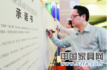 47個(gè)進(jìn)口家具品牌代表在承諾書上簽字,承諾經(jīng)營(yíng)的產(chǎn)品100%純進(jìn)口。