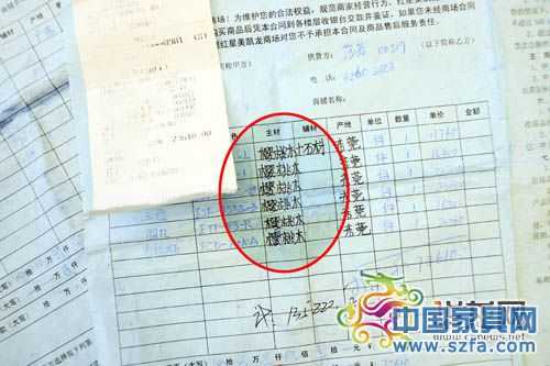 “我要的是實(shí)木的,訂單合同上也寫的是櫻桃木,實(shí)際上卻是中纖板,這不是玩弄消費(fèi)者嘛???”韋先生說(shuō)著,用小刀割開家具表面給記者看,電視柜的面板、底板及隔板內(nèi)部,確實(shí)不是實(shí)木,而是像紙殼一樣的物質(zhì),而韋先生拿出的合同上主材一欄明確寫著“櫻桃木”,輔材一欄則是空白。