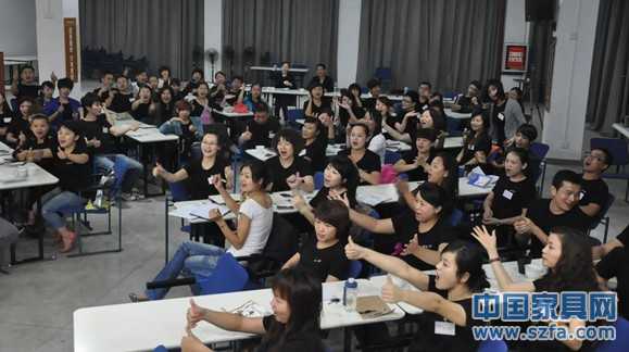 第一天下午,心態(tài)訓(xùn)練課程在龔俊生、譚婷老師的帶領(lǐng)下順利的開展,雖然學(xué)員們?cè)缟隙际呛茉缙鸫膊⑶疫€坐了5個(gè)多小時(shí)的長(zhǎng)途車,但是他們的學(xué)習(xí)的熱情依然高漲。譚婷老師在開始上課之前首先教了大家一些熱情的歡迎動(dòng)作,在一片雷鳴般的掌聲之后龔俊生老師閃亮登場(chǎng)。龔老師在隨后的一個(gè)小時(shí)之內(nèi)簡(jiǎn)單分析了現(xiàn)在家具業(yè)的行情以及做銷售心態(tài)訓(xùn)練方面的重要性,接著是龔老師向同學(xué)們介紹了8名義工并讓其自我介紹,然后進(jìn)行分隊(duì)。所有前期工作都做完了之后接下來進(jìn)行的心態(tài)訓(xùn)練是“茫茫人海”和“父母”,在“茫茫人海”環(huán)節(jié)所有學(xué)員需用眼罩蓋住眼睛,教室燈關(guān)閉,讓學(xué)員在教室中自由行走,讓學(xué)員們體會(huì)在人生追逐理想的路上的艱辛;在“父母”環(huán)節(jié),學(xué)員們同樣把眼睛蒙住,燈光關(guān)閉,充分放松,回想父母在幫助我們成長(zhǎng)過程中的不易,讓學(xué)員學(xué)會(huì)感恩。