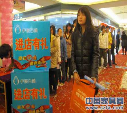 | 圖示:消費(fèi)者排成長(zhǎng)龍領(lǐng)取禮品 |