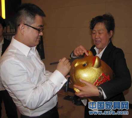 | 圖示:伊麗百蘭副總經(jīng)理賈迎軍先生為銷售冠軍杜麗雅女士簽名頒獎 |