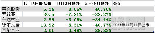 據(jù)網(wǎng)易家居監(jiān)控分析,整個木業(yè)家具行業(yè),平均下跌30.62%,遠遠高于整個A股市場7.96%的跌幅。跌勢較大的美克股份,累計最近三個月的跌幅超過40%,市值損失接近28億。去年11月11日才上市的德爾家居,在不足三個月的時間內(nèi),損失40.77%。同樣在去年上市的索非亞,三個月內(nèi)也跌去23.37%。