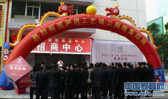 1月31日,筍崗工藝城三期招商中心啟動(dòng)儀式盛大舉行,由此筍崗工藝城三期招商拉開(kāi)帷幕,招商工作全面展開(kāi)。深業(yè)物流集團(tuán)副總裁付德梅女士、筍崗工藝城總經(jīng)理劉學(xué)明先生在儀式上為招商中心揭牌,精彩的舞獅采青表演和現(xiàn)場(chǎng)的火熱氣氛,吸引了近百商家到場(chǎng)咨詢登記,僅開(kāi)門(mén)當(dāng)天就簽出意向面積達(dá)1萬(wàn)多平方米。