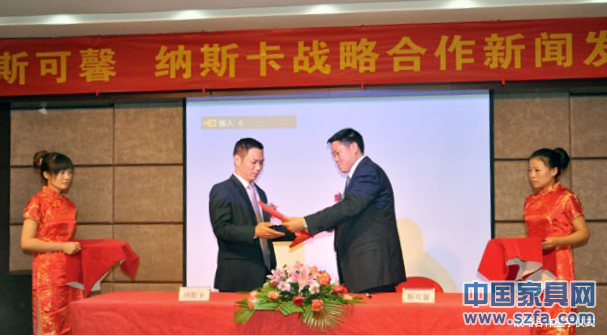 2012年1月11日,作為江蘇家具行業(yè)最具規(guī)模和創(chuàng)新力家具企 業(yè)江蘇斯可馨家具股份有限公司正式牽手蘇州第二大沙發(fā)品牌納斯 卡,實現(xiàn)優(yōu)勢互補、強強聯(lián)合,共同打造中國軟體家具布藝沙發(fā)第一 品牌。