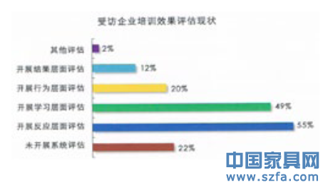 評估基本都是采用“柯氏四級評估”方式進行,但只有12%的企業(yè)開展結(jié)果層面的評估,還有22%的企業(yè)未開展系統(tǒng)的培訓(xùn)效果評估。