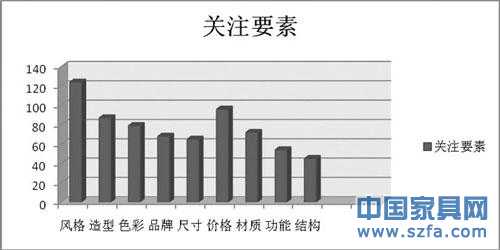 通過第一調(diào)查網(wǎng)問卷調(diào)查發(fā)現(xiàn),青年人最關(guān)注的家具要素依次為風(fēng)格、價(jià)格、造型、色彩等,如圖4 所示。下面我就根據(jù)家具的設(shè)計(jì)要素對(duì)產(chǎn)品定位提出自己的幾點(diǎn)建議。