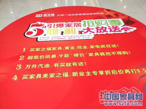除了這兩家賣場以外,包括紅星美凱龍香蜜湖店,博耐家居等深圳多家賣場均在五一前夕就打出了“給力促銷”,“賣場家具節(jié)”等標(biāo)語,成為節(jié)假日另外一道風(fēng)景線。