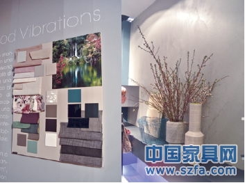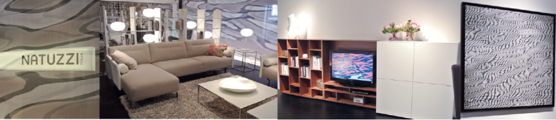 NATUZZI今年聘用專(zhuān)業(yè)的水體攝影師Gianni Basso,讓其用攝影加抽象的手法,表達(dá)水的多姿和靈動(dòng)。整個(gè)展廳的墻面裝飾通體為變形的水波紋,其曲柔的形態(tài)沖淡家具形體的生硬,貌似流淌的靈動(dòng)感賦予家具無(wú)限的生命力。