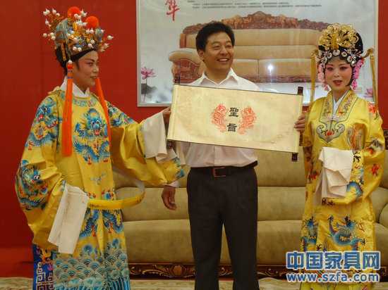 2012年4月28日,犀牛企業(yè)攜旗下產品高調參展首屆中國蘇州文化創(chuàng)意設計產業(yè)交易博覽會。開展當天,犀牛的展位上來了兩位至高無上的人物——唐明皇和楊貴妃。這對千古璧人借國家一級演員王永蘭、吳愛玲女士兩人的精湛演技穿越到了現(xiàn)代,并給犀牛頒布了一道圣諭:[茲聞蘇州首屆創(chuàng)意設計產業(yè)交易博覽會于公元二零一二年四月二十八日于蘇州國際博覽中心隆重舉行。犀牛企業(yè)致力于“傳承百年文化,東方智造”的產品理念。己于公元二零一一年經過業(yè)內資深專業(yè)人士策劃,成功推出犀牛系列并入主中南海,成為全國首家家具企業(yè)“中南海高端沙發(fā)供應商”成為有文化、有品位、收藏愛好者、成功人士的家具首選高檔品牌。犀牛企業(yè)根據高端顧客的需求,推出了獨一無二的定制化服務。布告中外,咸使聞之。