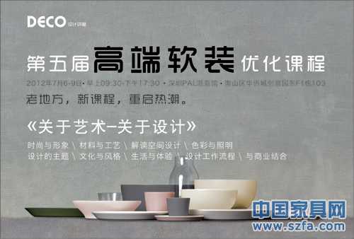 帶著四年專業(yè)的培訓(xùn)課程舉辦經(jīng)驗,DECO團(tuán)隊選擇了深圳這塊軟裝英才以及資源匯聚的福地,為自己新的征程起航。2012年7月6-9日,曾經(jīng)高考的汗流浹背的黑色時間,如今成為接觸頂尖設(shè)計師的黃金四天。同樣的四天課程,同樣的強(qiáng)大資源平臺,同樣四位國際知名設(shè)計師,香港著名設(shè)計師何宗憲先生、洪約瑟先生,法國設(shè)計師Thomas Darie先生,國內(nèi)著名設(shè)計師琚賓先生, 帶著全然一新的領(lǐng)悟與見解。