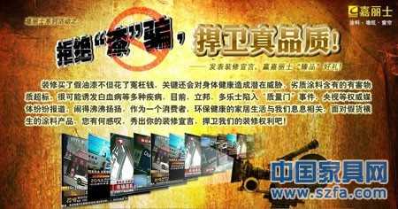 2012年年初,涂料行業(yè)丑聞迭起,關(guān)于產(chǎn)品造假、產(chǎn)品抽檢不及格的新聞涌現(xiàn),并波及不少行業(yè)品牌,令消費(fèi)者一時之間對外國品牌涂料失去信心,同時對如何挑選真品質(zhì)涂料引起了思考。專業(yè)品質(zhì),專業(yè)好漆的嘉麗士借助臻品系列墻面漆體驗物料,在終端向消費(fèi)者普及了判定乳膠漆性能的項目:彈性、凈味、擦洗、防水、吸附有害物質(zhì)等,讓消費(fèi)者豐富裝修經(jīng)驗知識。此外,嘉麗士在全國范圍發(fā)起“拒絕漆騙捍衛(wèi)真品質(zhì)”公益活動,號召消費(fèi)者增強(qiáng)消費(fèi)維權(quán)意識,并在電視臺接受采訪講述涂料環(huán)保裝修事宜,得到了消費(fèi)者的認(rèn)可。同時,嘉麗士漆借助網(wǎng)絡(luò)平臺,覆蓋上億受眾,策劃了臻品系列FLASH體驗活動,涂料大戰(zhàn)僵尸活動,形象生動為網(wǎng)友普及了涂料環(huán)保指標(biāo)各項要素,肩負(fù)環(huán)保使命,以倡導(dǎo)健康家居為己任,展示了至臻品質(zhì)。