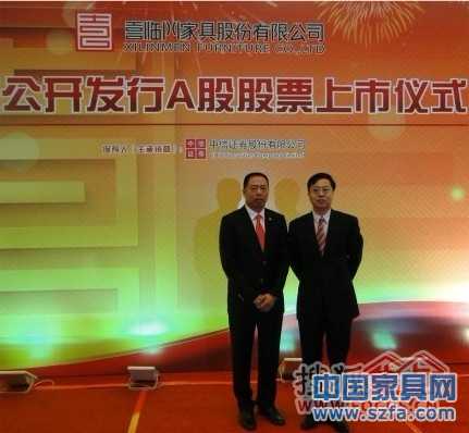 在上交所慶祝上市的喜臨門家具