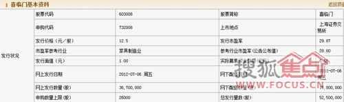 昨日,繼敏華控股、皇朝家私等家具企業(yè)之后,家具行業(yè)又多了一家上市企業(yè)。2012年7月17日9點45分,來自浙江的喜臨門家具股份有限公司在滬深交易所上市,證券代碼為總股本為“603008”。喜臨門家具此次上市總股本為2.1億股,發(fā)行價為12.5元/股,對應發(fā)行市盈率為29.87倍,其中首次公開發(fā)行的5250萬股今日在上交所上市。針對喜臨門的此次上市,安信證券預計公司上市定位區(qū)間為9.90元-12.10元。