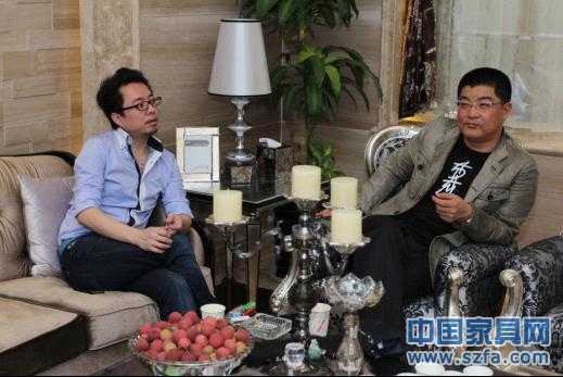 張加良(左)和張宏毅(右)在米洛西南寧旗艦店接受記者采訪