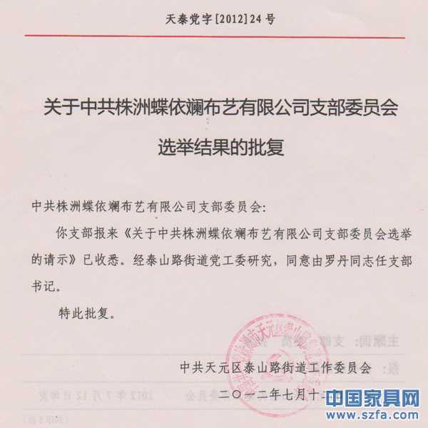 中共株洲蝶依斕支部委員會選舉結(jié)果批復(fù)