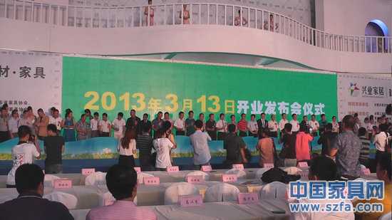 上午11點,活動正式開始,東莞市厚街鎮(zhèn)政府副鎮(zhèn)長方活力先生、全國工商聯(lián)家具裝飾業(yè)商會執(zhí)行會長張傳喜、中國家具協(xié)會副理事長陳寶光、興業(yè)家居董事總經(jīng)理梁勁松分別發(fā)表重要講話!參會的政府領(lǐng)導(dǎo)、30多家各地家具協(xié)會、相關(guān)協(xié)會共計40多位領(lǐng)導(dǎo)共同參與了興業(yè)家居“2013年3月13日開業(yè)發(fā)布會儀式”,宣告著興業(yè)家居項目將正式進(jìn)入開業(yè)運(yùn)營倒計時。