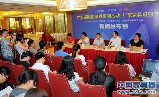 為共同推動廣貨巡回促銷月系列活動廣東家具采購節(jié),做好各項宣傳籌備工作,省經(jīng)信委、廣東省家具協(xié)會與簡愛家居連鎖機(jī)構(gòu)于2012年8月23日上午在廣州市舉行“2012廣貨巡回促銷月系列活動廣東家具采購節(jié)”新聞發(fā)布會。