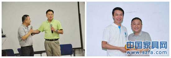曲美趙瑞海接受中國家具產(chǎn)業(yè)教育學(xué)院送上的禮物,學(xué)員代表上臺送上禮物。
