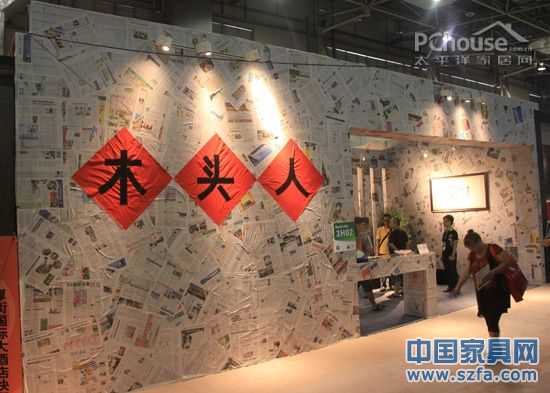 木頭人紙展廳:這是筆者見過(guò)的有史以來(lái)最省錢的展位設(shè)計(jì):用報(bào)紙搭建展廳??峙潞芏嗳藢?duì)此聞所未聞,但是在本屆東莞名家具展現(xiàn)場(chǎng),卻見到了這樣的“紙廳”。