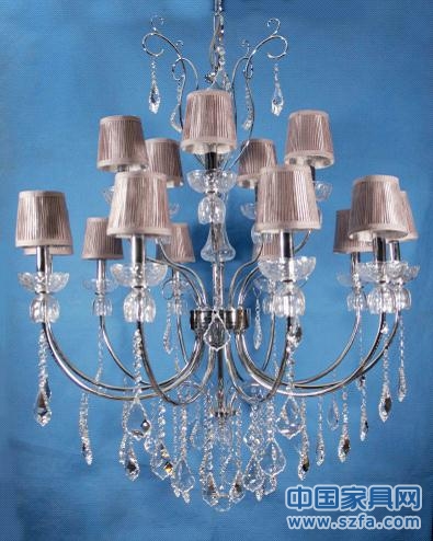 燈架采用優(yōu)質(zhì)鋼材,玻璃+進(jìn)口仿水晶+布罩