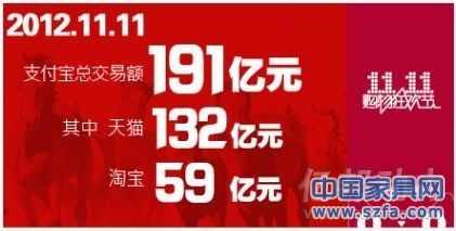 在眾多氛圍的渲染下,注定了這場廝殺更為慘烈,但雙十一又似乎注定了淘寶天貓才是贏家,因為品類多而全,涉及商品成千上萬,淘寶上的商品真可以用“沒有買不到,只有想不到”來形容其多、其全。于是淘寶注定成了大贏家,截至11月12日凌晨,淘寶數(shù)據(jù)統(tǒng)計,天貓銷售額達132億元,支付寶銷售總額達191億元。其中家具類目實際成交12億1千多萬,銷售產(chǎn)品73萬7千多件,平均客單價1648元。