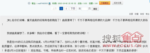 2012年10月goodfeel,有網(wǎng)友爆料稱,曲美家具重慶經(jīng)銷商資金周轉(zhuǎn)困難,現(xiàn)已關(guān)門跑路,不少消費(fèi)者付了錢卻提貨無門。而重慶部分賣場(chǎng)也肯定了此爆料的真實(shí)性,表示共有近80位消費(fèi)者受此事件影響17173,涉及金額達(dá)到100多萬元。