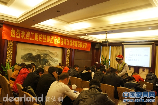 2012年12月24日,蝶依斕家居布藝湖南公司誠(chéng)邀匯聚國(guó)際教育集團(tuán)金牌講師江斌老師,進(jìn)行了一次《真正的執(zhí)行》培訓(xùn)課程。蝶依斕家居布藝公司花重金舉辦這次培訓(xùn)課程,旨在培養(yǎng)和建設(shè)一支素質(zhì)高、執(zhí)行力強(qiáng)的優(yōu)秀企業(yè)團(tuán)隊(duì),提高員工工作效能和職業(yè)素養(yǎng)。蝶依斕湖南公司本部20多名中高層管理人員參加此次課程,公司董事總經(jīng)理陳紅英、董事副總經(jīng)理卿科華、董事副總經(jīng)理陳章毅也紛紛到場(chǎng)接受了培訓(xùn)。