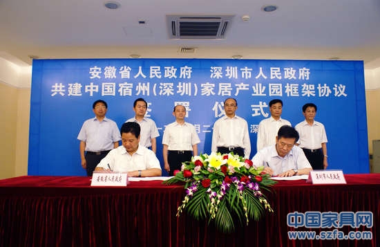 9、2012年8月22日,安徽省人民政府副省長黃海嵩與深圳市人民政府副市長唐杰在深圳市民中心簽署共建“中國宿州·深圳家居產(chǎn)業(yè)園框架協(xié)議”。將中國宿州·深圳家居產(chǎn)業(yè)園的建設(shè)提升到了更高的層次。