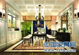美式家具用材多為實木,涂飾常采取做舊處理。美式家居非常重視裝飾,如風(fēng)鈴草、麥束和甕形裝飾等。