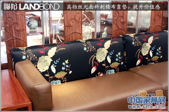 黑色的絲光布上,立體地刺繡著繁華盛開的圖像,多種鮮艷的色彩搭配黑色,更給人尊貴奢華的設計感,高端奢華的選料從用材上提升沙發(fā)的價值感。