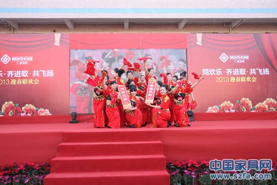 騰龍呈祥辭舊歲,金蛇獻(xiàn)瑞迎新春,伴隨著喜氣洋洋的新春氣息,2013年1月30日,以“同歡樂、齊進(jìn)取、共飛揚(yáng)”為主題的迪諾雅家具2013年迎春聯(lián)歡會在歡歌笑語中拉開了序幕,來自迪諾雅家具各工作崗位的員工及員工家屬、供應(yīng)商代表及行業(yè)媒體朋友兩千多人歡聚于仁豪工業(yè)園,賓客云集,滿堂歡慶,喜迎新年。由迪諾雅各部門員工精心策劃、排練演出的歌唱、小品、舞蹈、魔術(shù)等精彩節(jié)目為在座的嘉賓和同事們奉獻(xiàn)了一場精彩的迎春聯(lián)歡會。