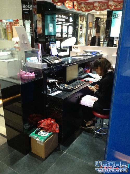 雖然紅星美凱龍商場(chǎng)明令禁止商家私自收取貨款,但記者在暗訪中發(fā)現(xiàn),商場(chǎng)內(nèi)的不少商家卻都安裝了POS機(jī)和點(diǎn)鈔機(jī)??的偷羌揖印⒅トA士頭等艙沙發(fā)店把POS機(jī)放在電腦桌中間層,特地陶瓷商家在放著“統(tǒng)一收銀”溫馨提示的柜臺(tái)前,擺放了4臺(tái)銀聯(lián)卡密碼輸入器。讓記者感到奇怪的是,為何紅星美凱龍對(duì)這些商家公開(kāi)私自收取貨款的行為看不見(jiàn)?