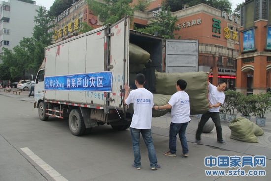 2013年4月23日下午,深圳夢(mèng)之美家居總經(jīng)理張文魁、副總楊剛一行五人帶著趕制出的首批價(jià)值五萬(wàn)余元的一千余件多功能抱枕和兩百多件嶄新的衣服送往成都神仙樹(shù)雅安天全縣定點(diǎn)物資捐贈(zèng)點(diǎn),由捐贈(zèng)點(diǎn)直接發(fā)往天全縣重災(zāi)區(qū)。在捐贈(zèng)點(diǎn),公司領(lǐng)導(dǎo)與捐贈(zèng)點(diǎn)負(fù)責(zé)人進(jìn)行了交流,對(duì)捐贈(zèng)物資進(jìn)行了登記并了解了災(zāi)區(qū)的情況,并就下一步的捐贈(zèng)進(jìn)行了溝通和部署,張總決定,親自帶隊(duì)隨捐贈(zèng)點(diǎn)車隊(duì)進(jìn)入災(zāi)區(qū)協(xié)助賑災(zāi)工作。