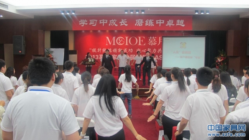 2013年5月31日至2013年6月3日,慕月家具來(lái)自全國(guó)各地的200余店長(zhǎng)與終端導(dǎo)購(gòu)齊聚青島平度秀水苑度假村,由慕月家具舉辦的提升終端 鑄就成功 凝心聚力 共創(chuàng)未來(lái)暨2013慕月家具終端團(tuán)隊(duì)提升培訓(xùn) 國(guó)際•AST訓(xùn)練營(yíng)勝利召開(kāi),期間就家居經(jīng)銷商處在什么樣的生存環(huán)境里、經(jīng)銷商的生存理念、經(jīng)銷商店面管理以及經(jīng)銷商店面該銷售進(jìn)行了系統(tǒng)培訓(xùn),讓參與培訓(xùn)的學(xué)員完成了在學(xué)習(xí)中成長(zhǎng)、在磨練中卓越,所有學(xué)員在完成培訓(xùn)學(xué)習(xí)后參觀了慕月新建成的數(shù)字化加工廠,讓學(xué)員對(duì)全新的實(shí)木加工模式有了更深入和全面的了解。在活動(dòng)期間,慕月全新模式店發(fā)布,為今年深圳參展產(chǎn)品上市打下堅(jiān)實(shí)的硬件基礎(chǔ)。