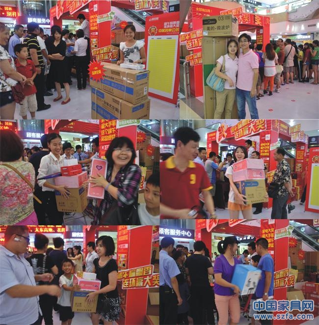 兩個儀式舉行完畢,現(xiàn)場還進行了國安居惠陽店一線品牌提供的30余款1元起拍活動,現(xiàn)場業(yè)主有只花300元就搶到了價值上千的花灑和鋼化門。最后快結束的時刻,現(xiàn)場業(yè)主還舍不得的離開,建議再增加幾款產品拍賣,應業(yè)主要求,高斯衛(wèi)浴的總經理又特意從店里搬了一款價值2000多元的產品進行現(xiàn)場拍賣。拍賣結束,抽獎區(qū)域又開始拍起了抽獎的長龍,據(jù)統(tǒng)計當天總銷售額近100余萬。活動延續(xù)到晚上7點整獎品空調、冰箱、微波爐、700多個生活好家居禮品全部抽出。各位業(yè)主當晚真是滿載而歸!