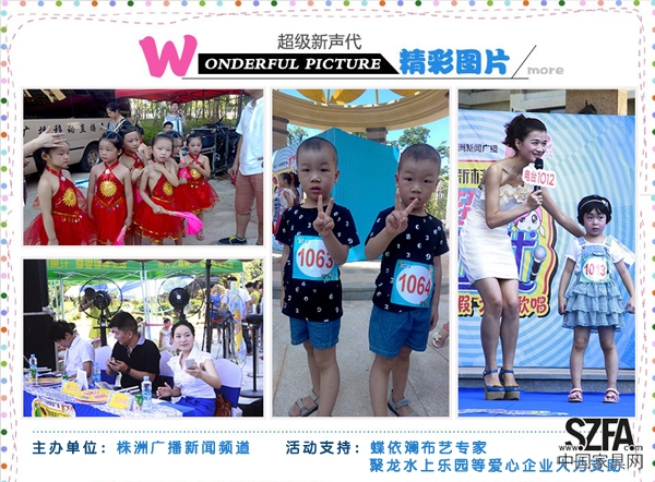 近日,由株洲廣播新聞?lì)l道主辦,蝶依斕布藝專家,聚龍水上樂(lè)園,匯源100%純果汁等愛(ài)心企業(yè)大力支助的大型兒童歌唱秀“超級(jí)新聲代”第一場(chǎng)初賽正式開(kāi)幕,150多位前來(lái)參加比賽的小朋友們?cè)诎职謰寢尩呐阃略缭绲膩?lái)到了位于荷塘區(qū)建工新桂廣場(chǎng)的比賽現(xiàn)場(chǎng)。同時(shí)主辦方還設(shè)立了“蝶依斕幸福寶貝秀”攝影展,8月底將評(píng)出攝影大獎(jiǎng)。此次活動(dòng)為有夢(mèng)想、想唱歌的孩子們提供一個(gè)自我展示的絕佳舞臺(tái),充分展現(xiàn)出株洲小朋友們的才藝和積極向上的精神風(fēng)貌,為株洲創(chuàng)文添磚加瓦。