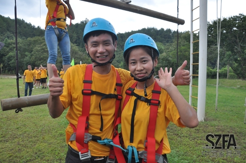 穿上安全服后,學(xué)員們逐個進(jìn)行高空項(xiàng)目。在搭檔的配合下,隊(duì)員的吶喊鼓勵下,站在10米高空的每個人都成功克服心理的恐懼,勇敢挑戰(zhàn)困難,突破自己,激發(fā)了潛能。